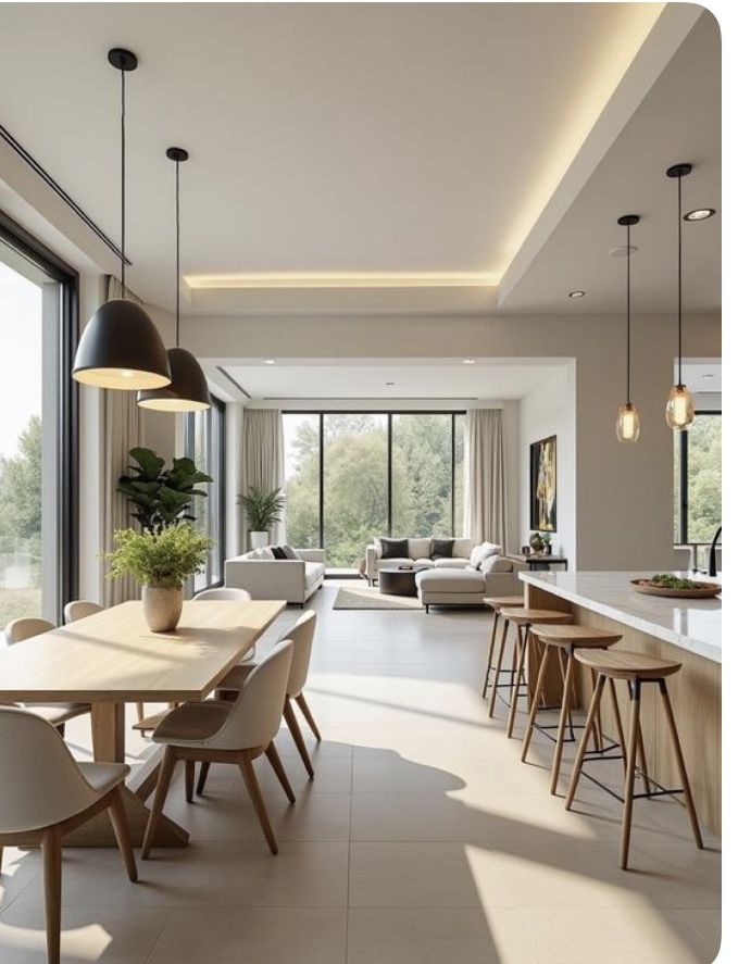 La iluminación debe permitir crear distintos ambientes: uno más funcional para cocinar y otro más cálido para el salón.
